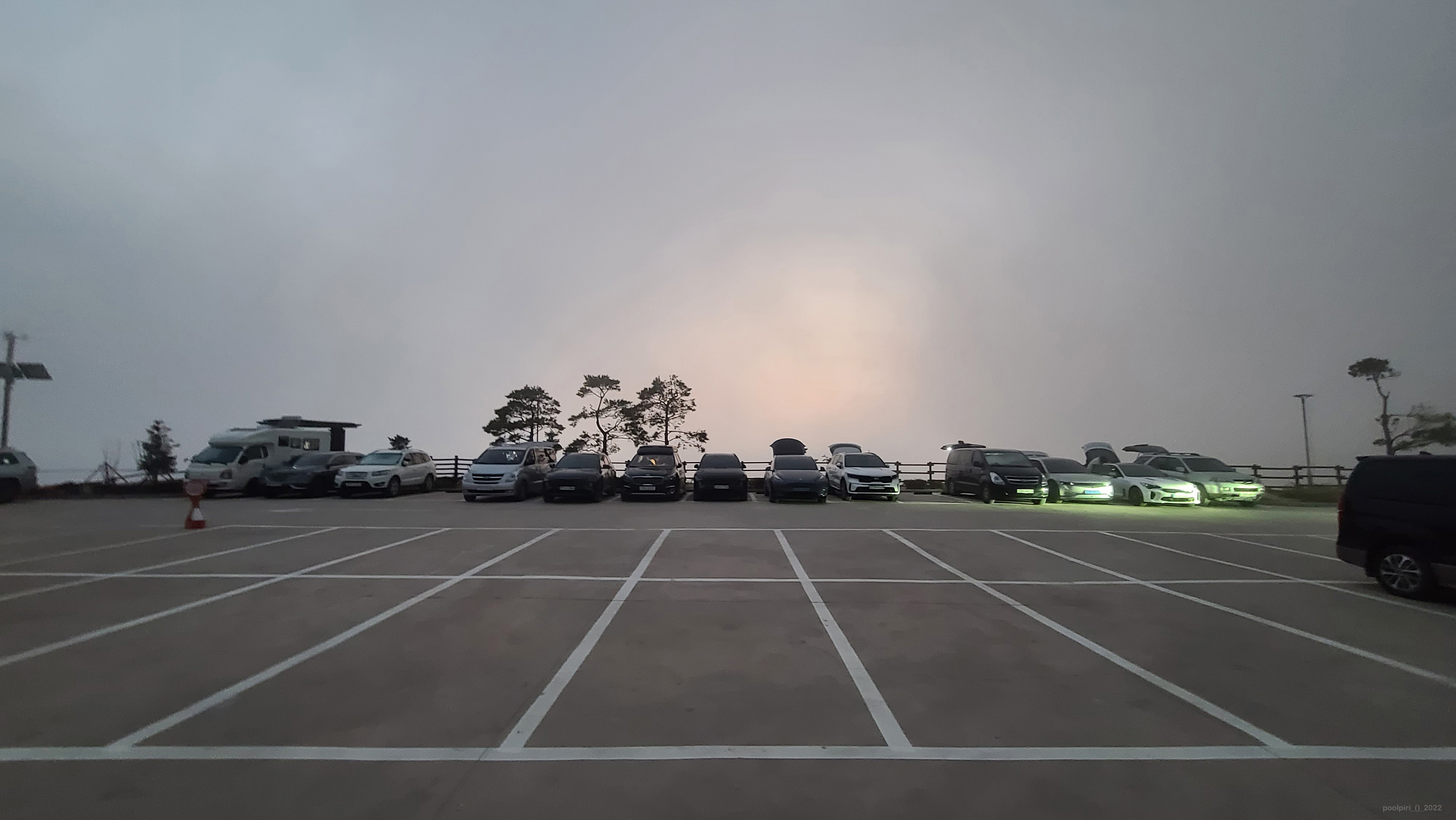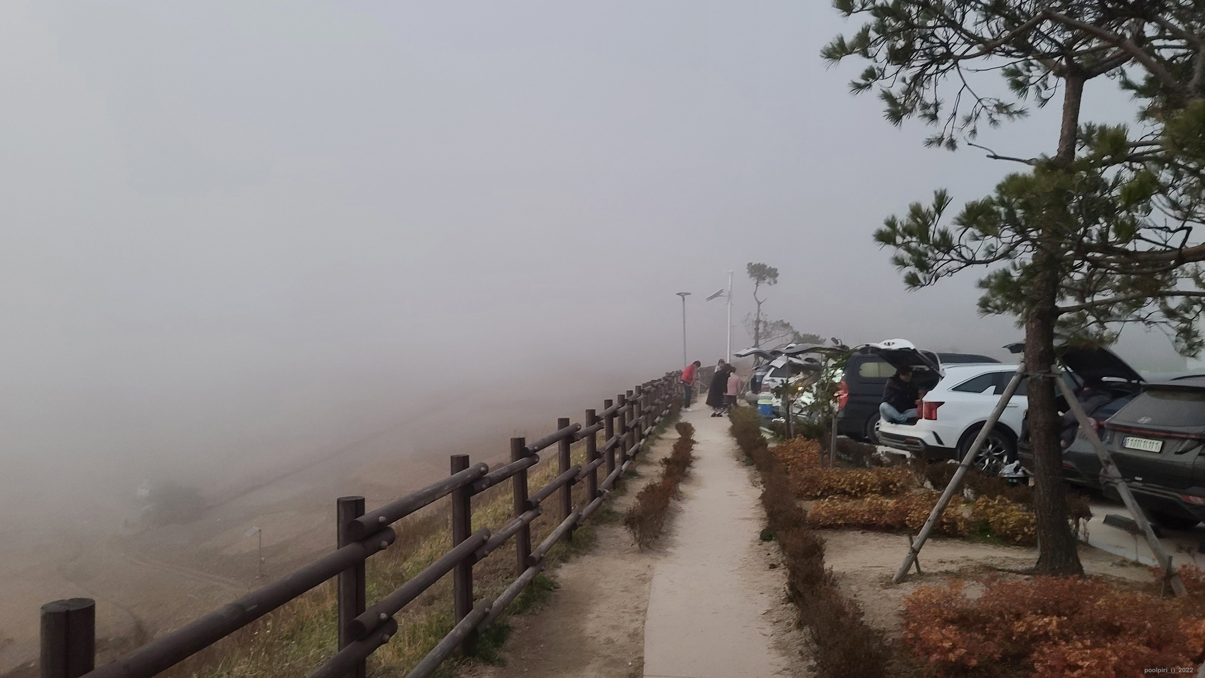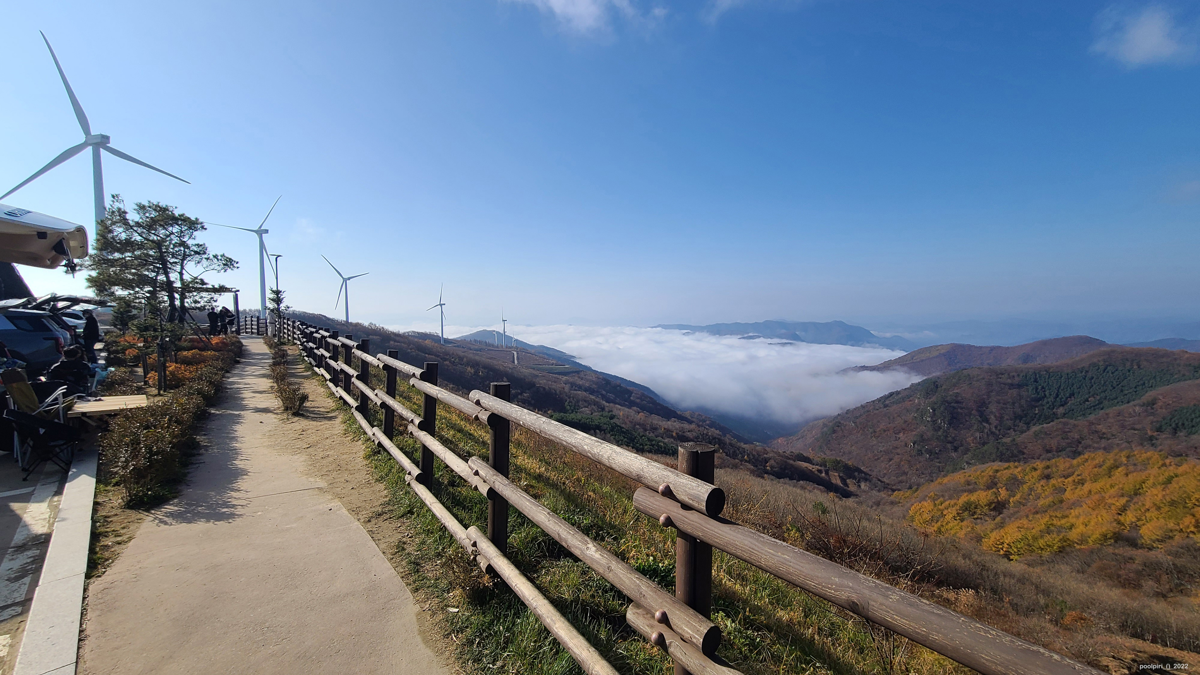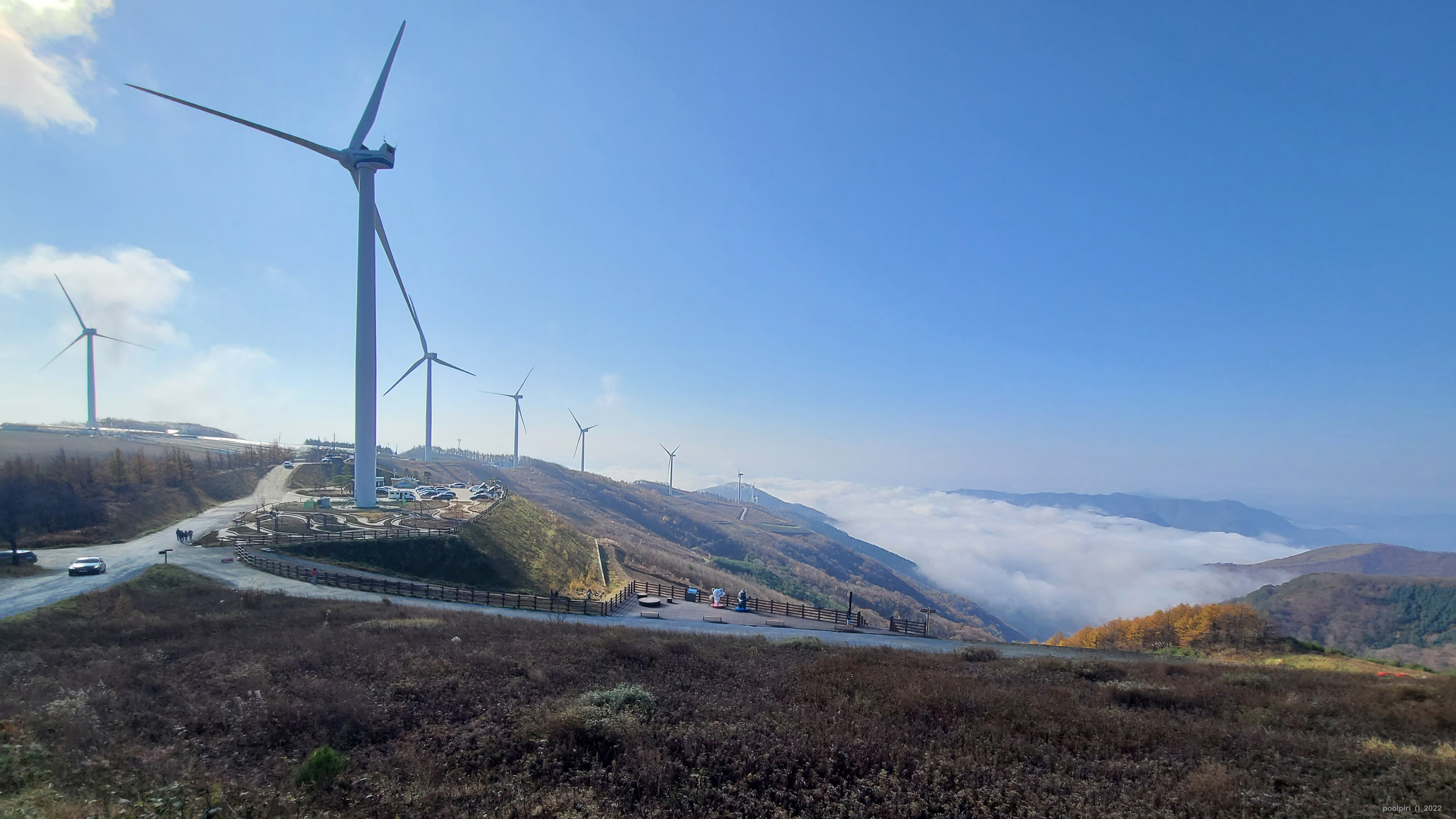 2022년 10월 말, 청옥산 육백마지기에 다녀왔다. 정선-평창 간 42번 국도 상의 미탄면(면사무소 소재지, 해발 300미터)으로부터 청옥산 육백마지기 주차장(해발 1,200미터)까지 11km 거리 중, 산 중턱부터 정상 부근까지 2.3km 구간은 비포장길이다. 대형버스나 캠핑카 1톤 이상은 통행을 제한한다는 현수막이 나붙어 있다. 정상 부근에는 화장실 딸린 포장 주차장이 하나 있고 비포장 주차공간도 몇 군데 있었다.