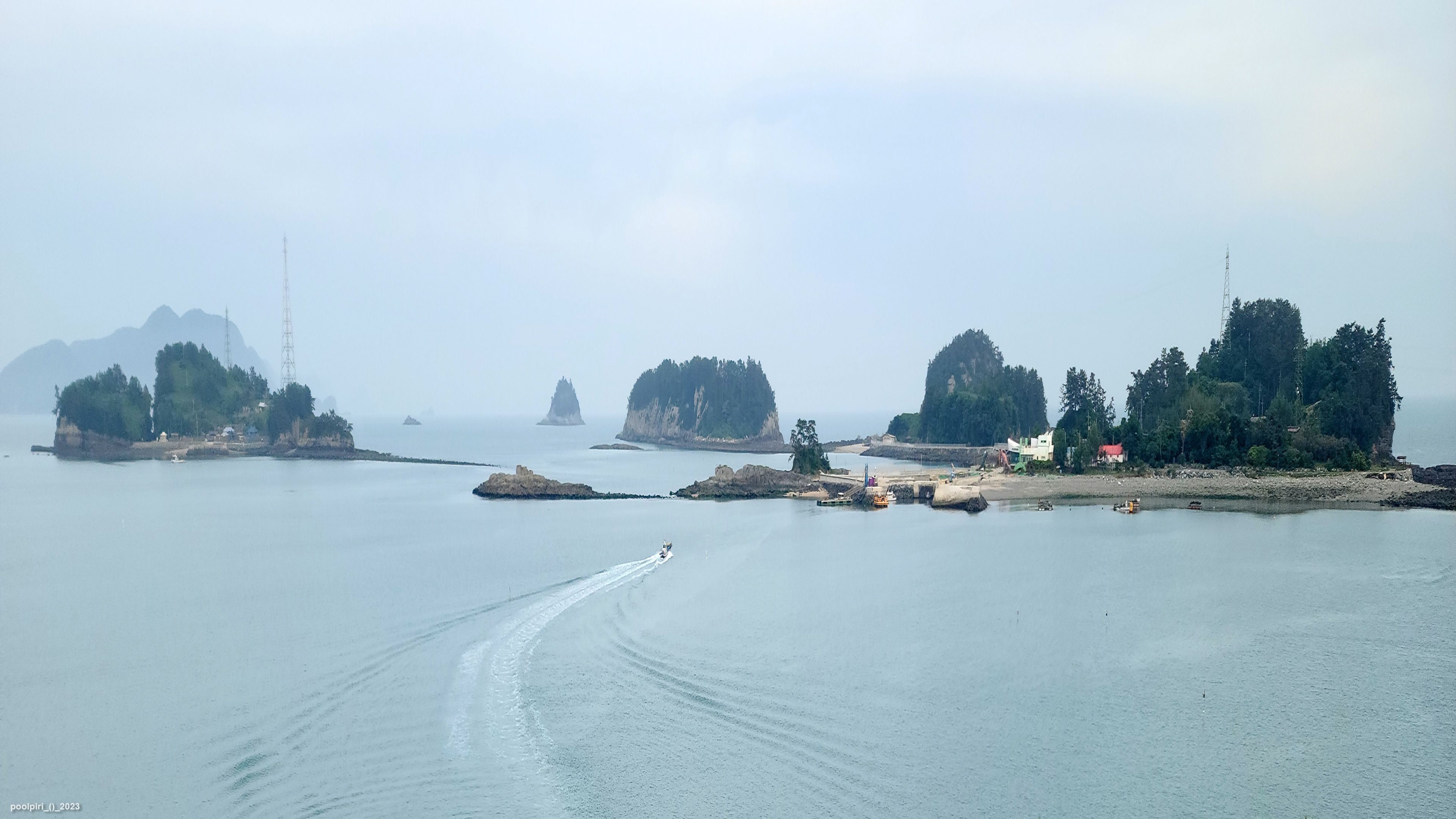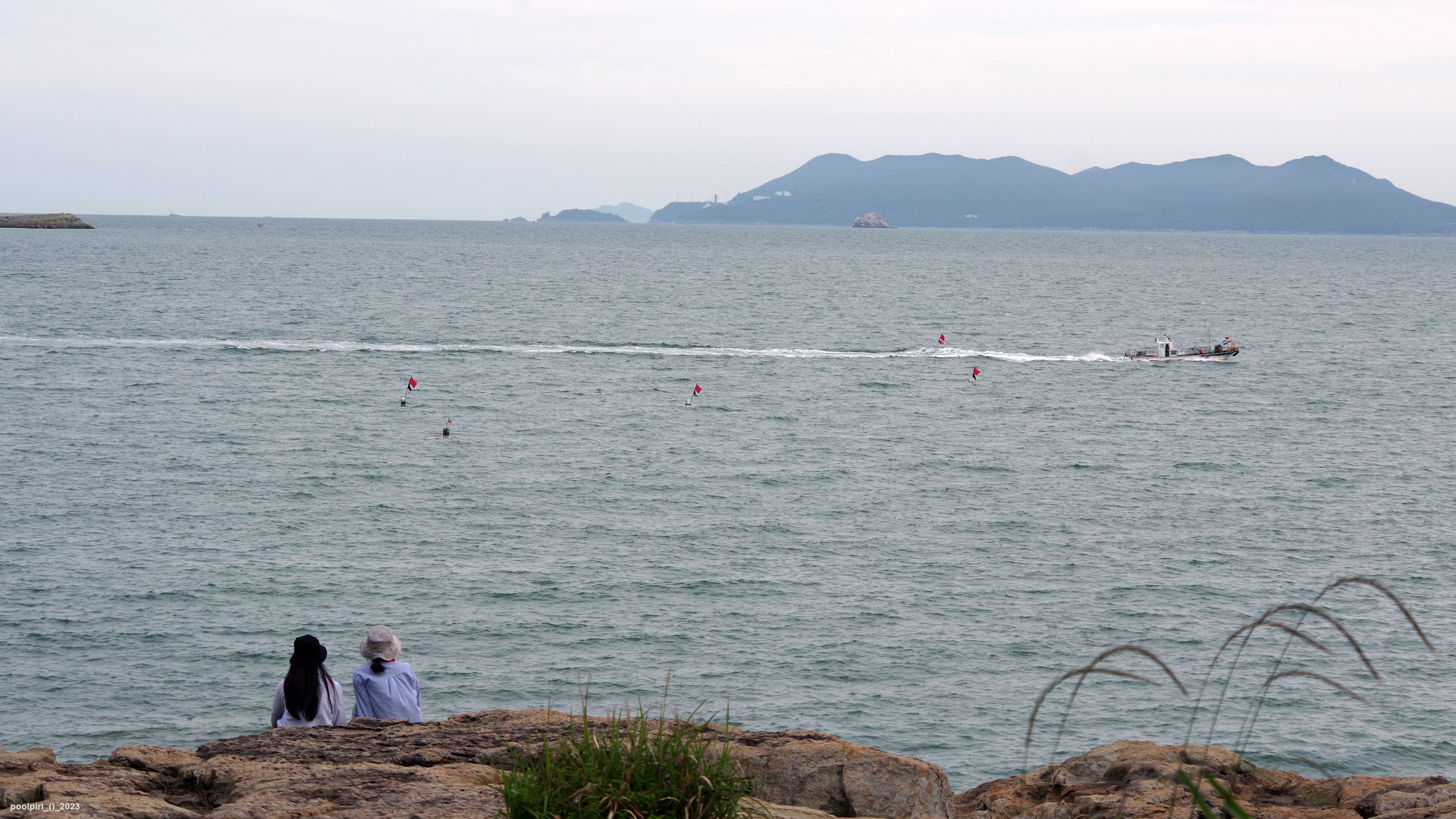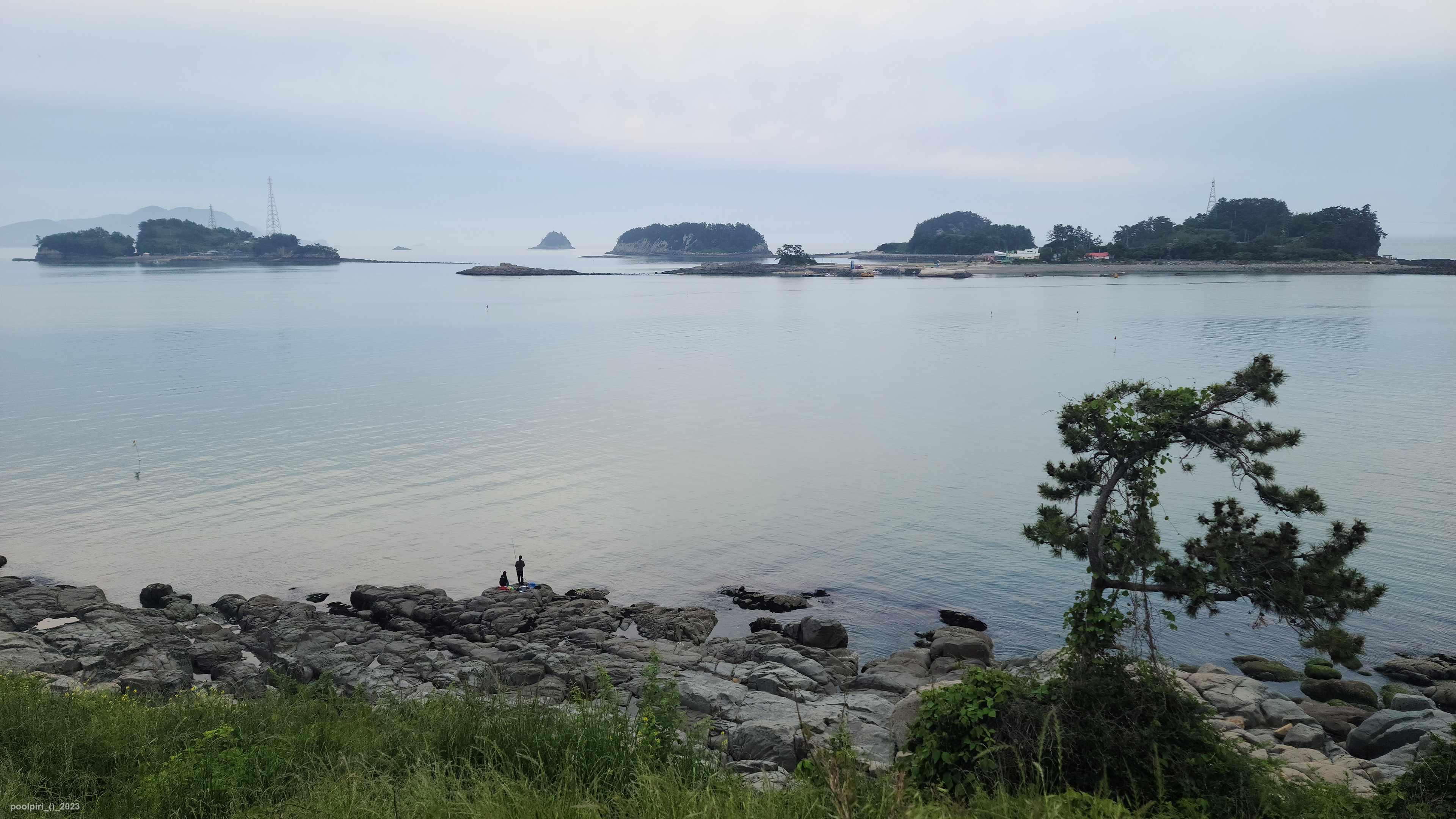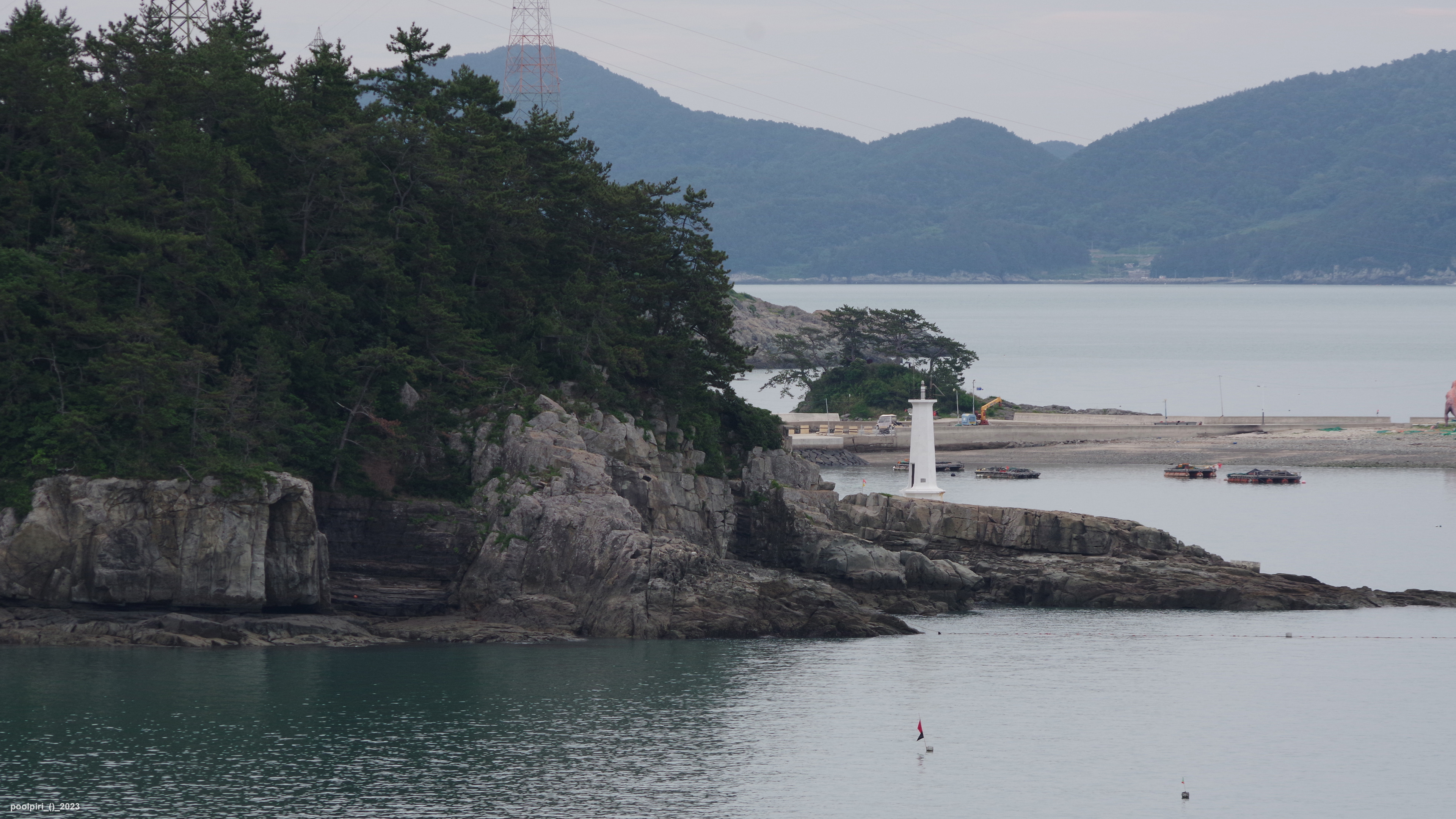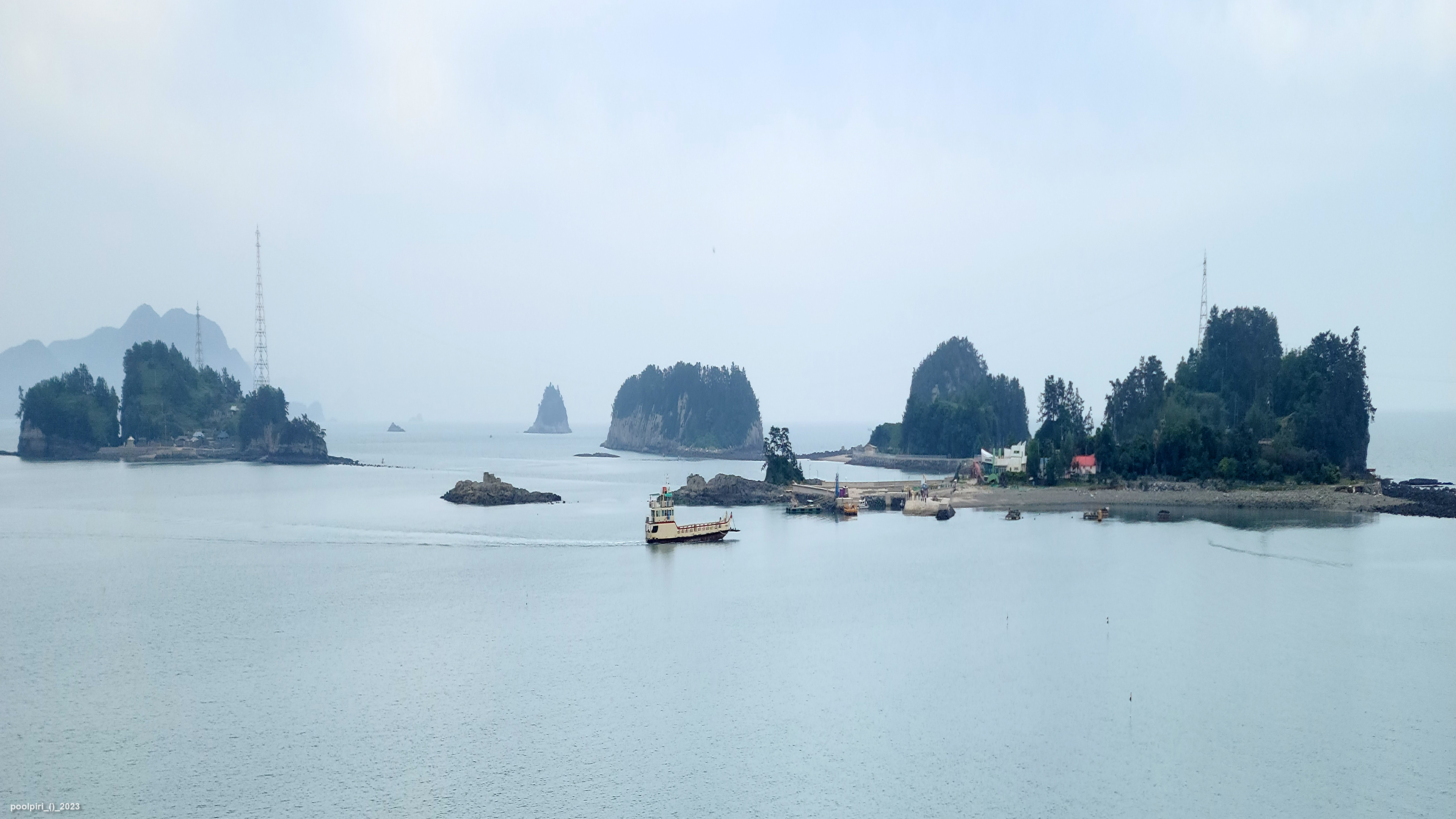 낭도에서 바라본 사도(沙島, 모래섬) 쪽 조망이 멋지다. 백야도와 (제도-개도-하화-상화-사도를 거쳐) 낭도를 오가는 대형카훼리 3호(태평양해운)가 낭도항에 닿는다.